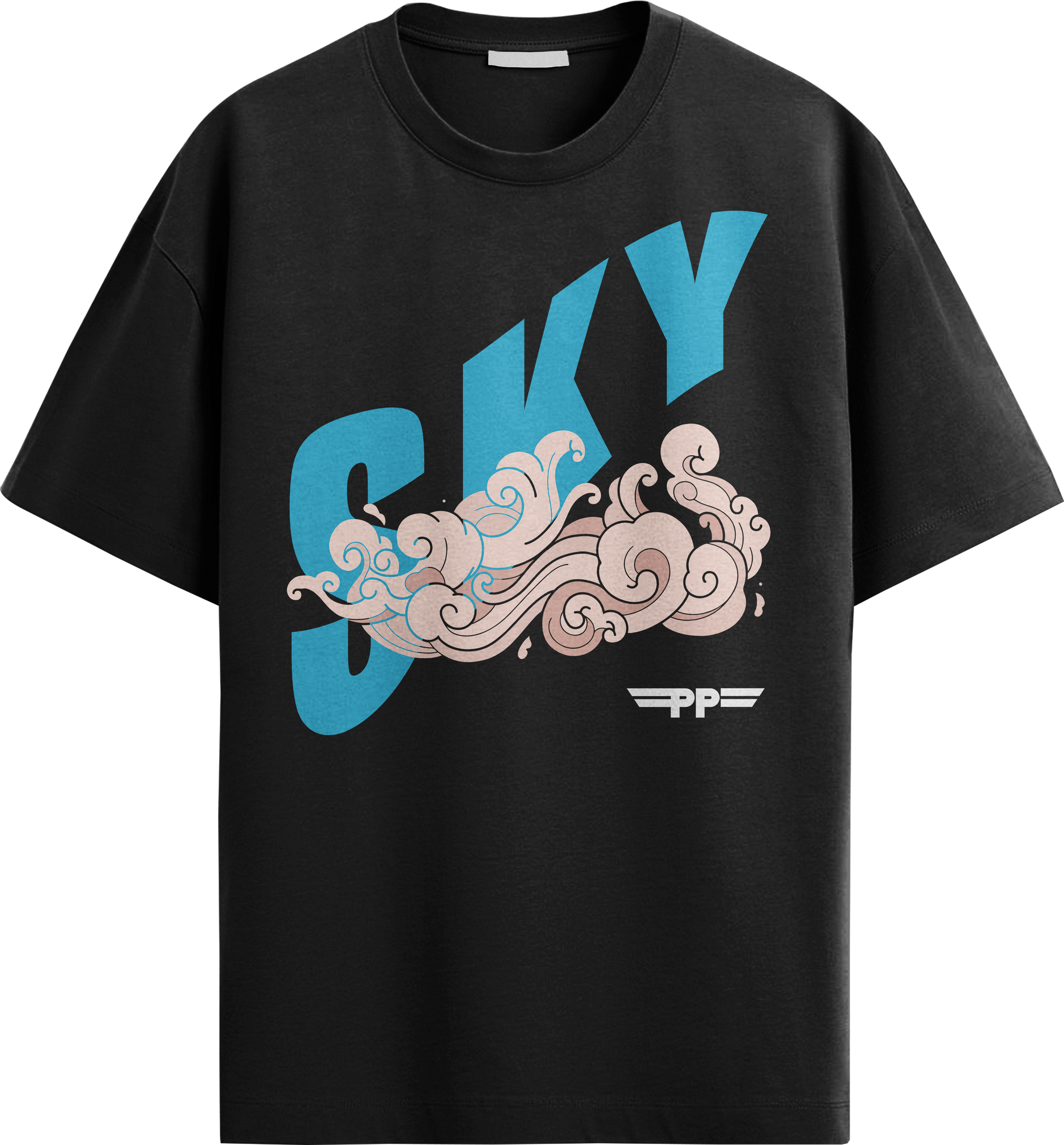 Black T-shirt | 100% Cotton | Sky